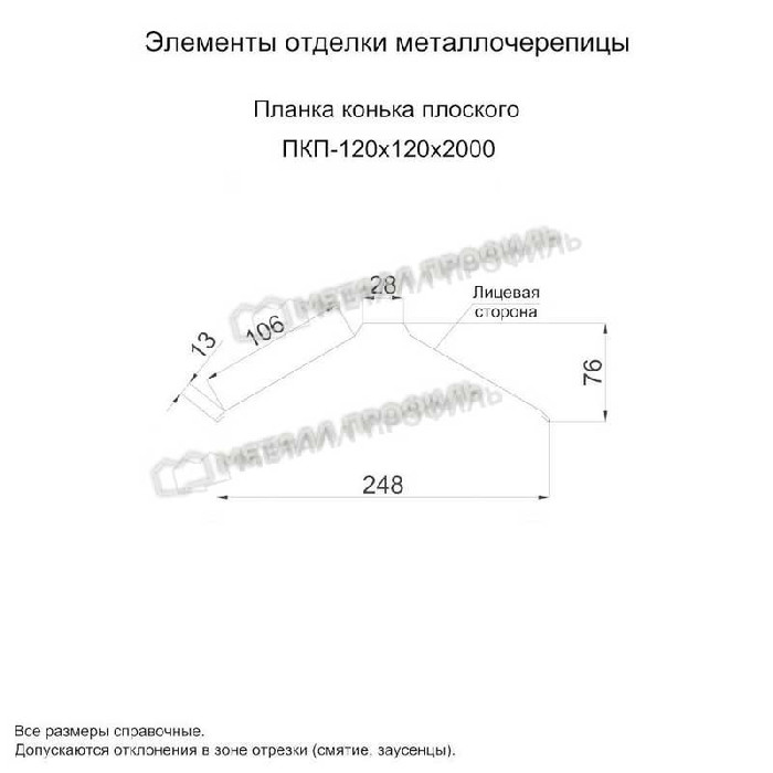 Планка конька плоского 120х120х2000 (PURMAN-20-RR32-0.5) Показать информацию