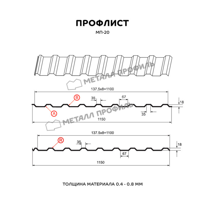 Профлист Металл Профиль МП-20 0,4 Полиэстер матовый двусторонний RAL 7024/7024 Серый графит/Серый графит | B
